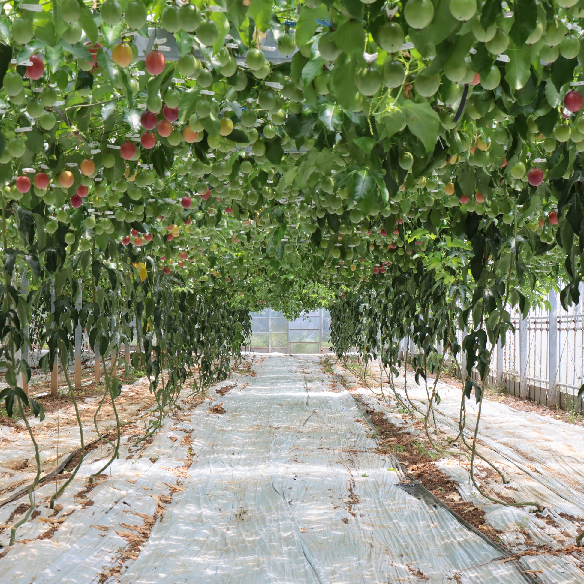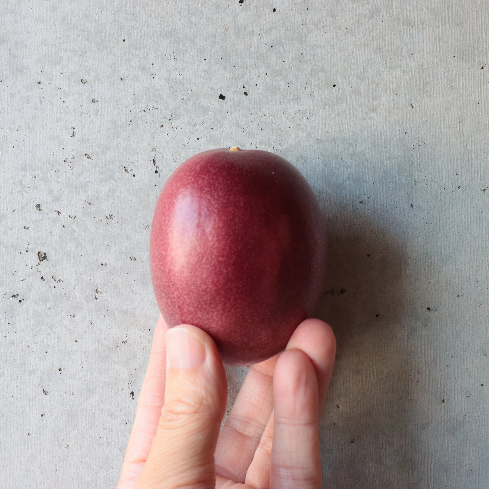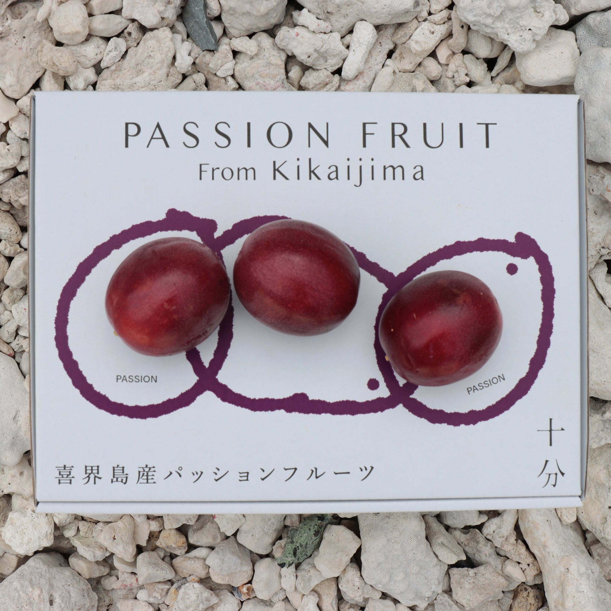 喜界島の自社農園で、サンゴ由来のミネラル豊富な土壌と澄んだ空気、そして無農薬のやさしい環境の中、ひとつひとつ大切に育てたパッションフルーツです。