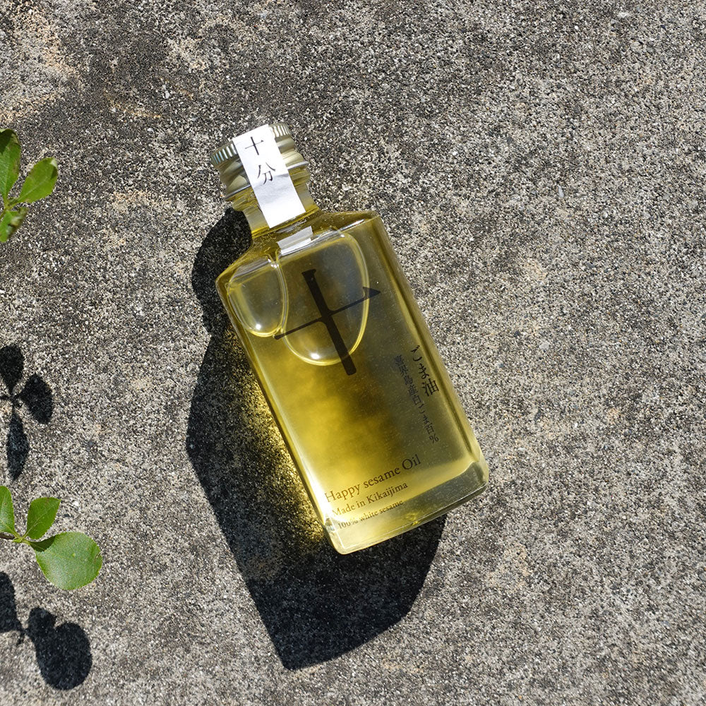 Happy sesame oil is refined from only the best of Kikai Island's original white sesame cultivated without pesticides or chemical fertilizers. We took time to verify the roasting, filtration, and precipitation so that the original aroma of the sesame seeds can be strongly felt.